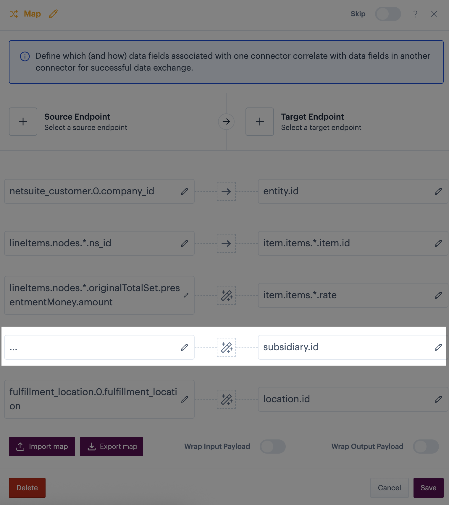 Pushes the NetSuite ID into line items from the previous payload for cleaner mapping.