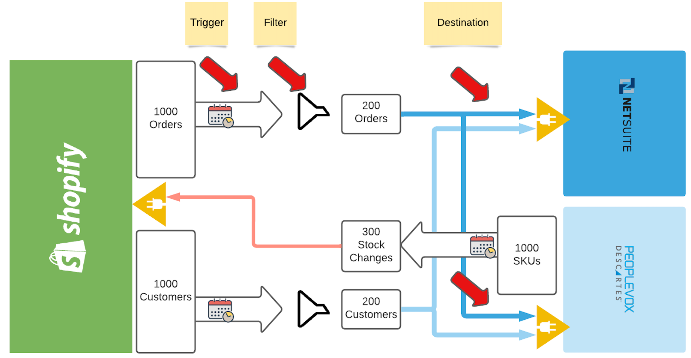 Filters. Determine what data is pulled from the source - for example, if you schedule a service to run every 10 minutes, it would be sensible to only pull data that's been added or updated in the last 10 minutes.