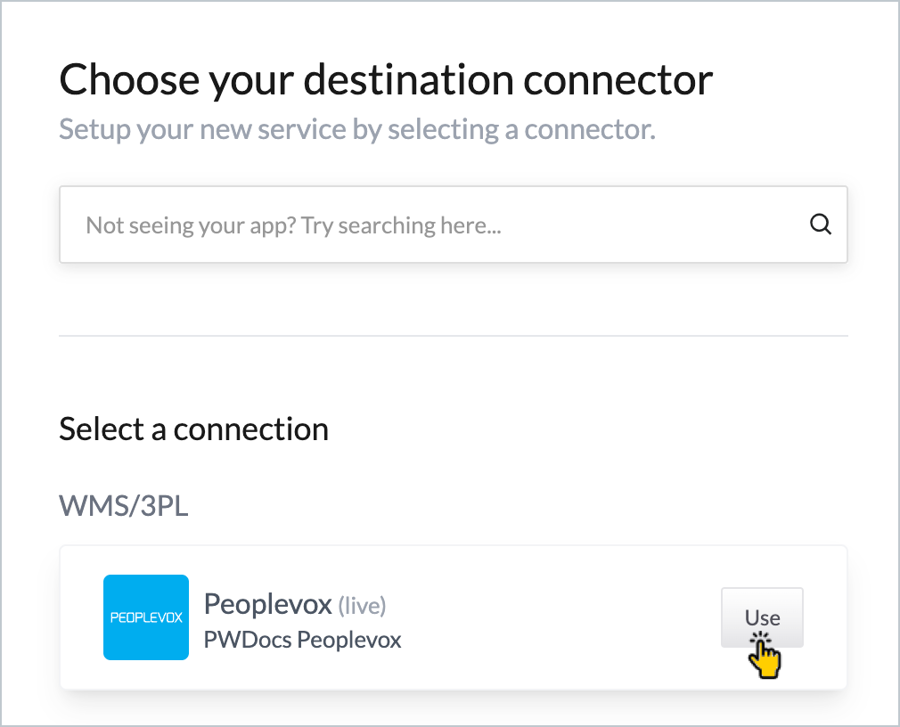 This option is also available from the bottom of any connector setup page, so if you’ve just finished adding an Inbound API connector, you can go straight to service setup from there: