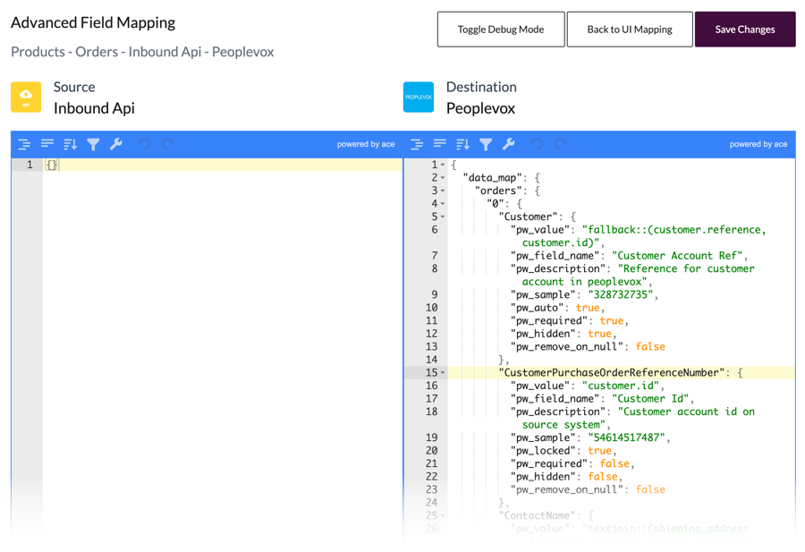 However, the Inbound API connector is unique for every client - Patchworks has no prior knowledge about how fields in a custom payload correlate to fields in other systems. As such, you must define the required mappings.