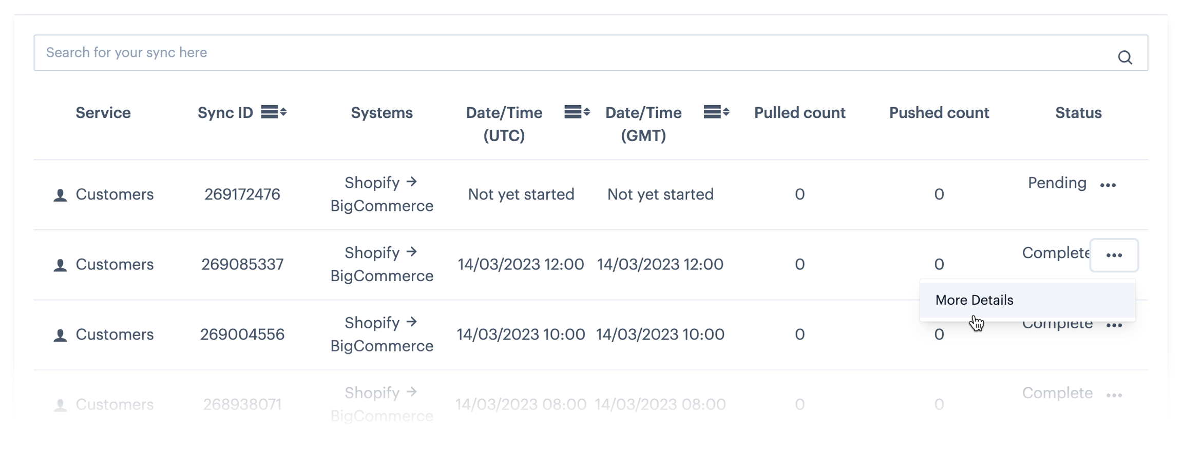 Step 2 Select more details from the ellipses menu associated with the sync you wish to view: