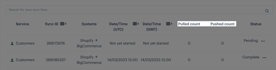The pulled count is the number of records retrieved from the source for processing and the pushed count is the number of records synced to the destination.