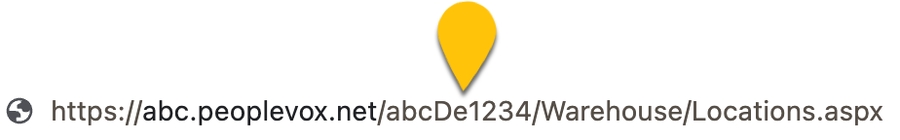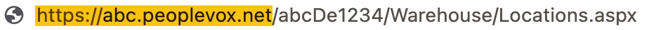 Having logged into Peoplevox, the required URL is the first part of the full URL shown in your browser's address bar, up to your client id. For example: