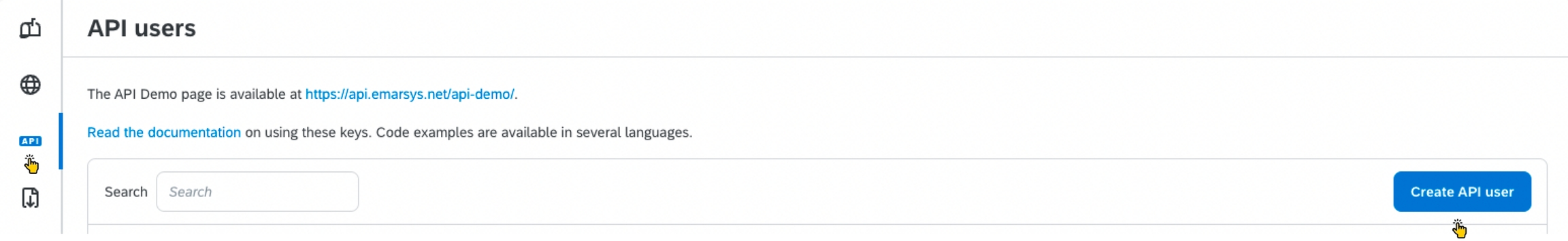 Step 3 Select API from the left-hand navigation menu, then click the create API user button:
