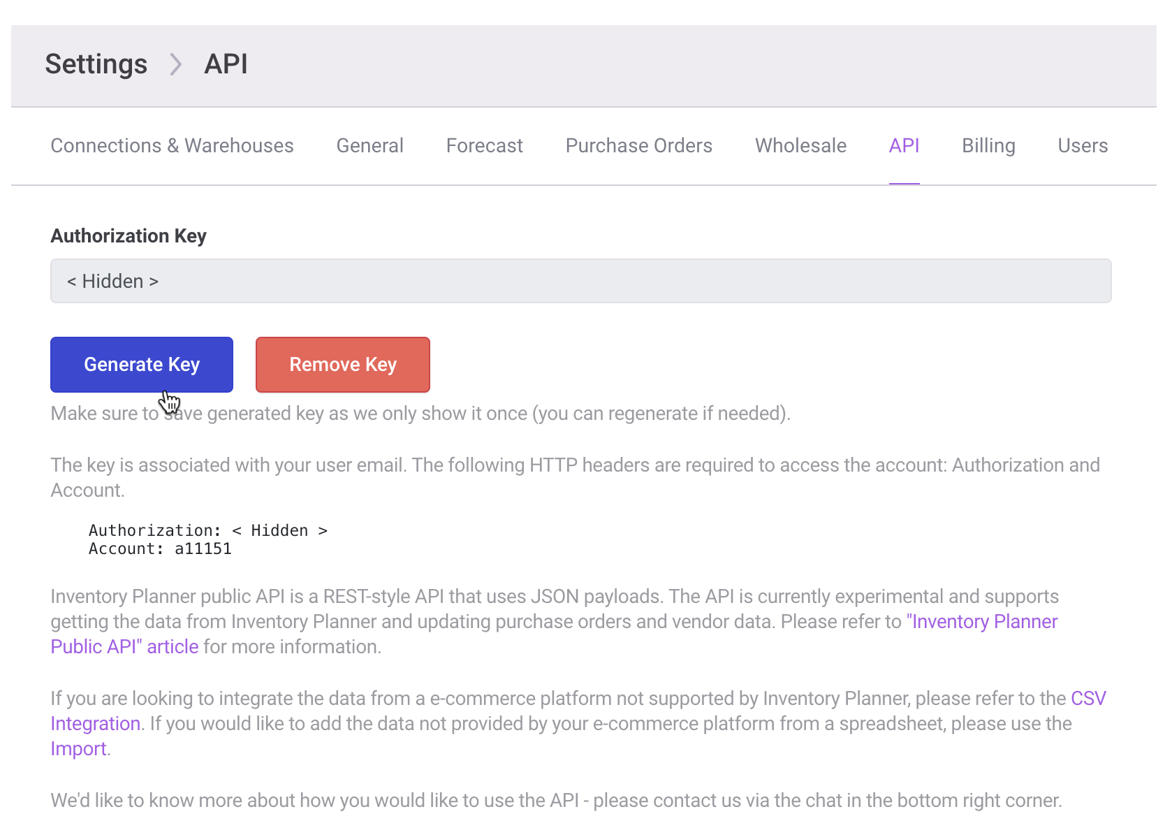 Generated via Inventory Planner API settings