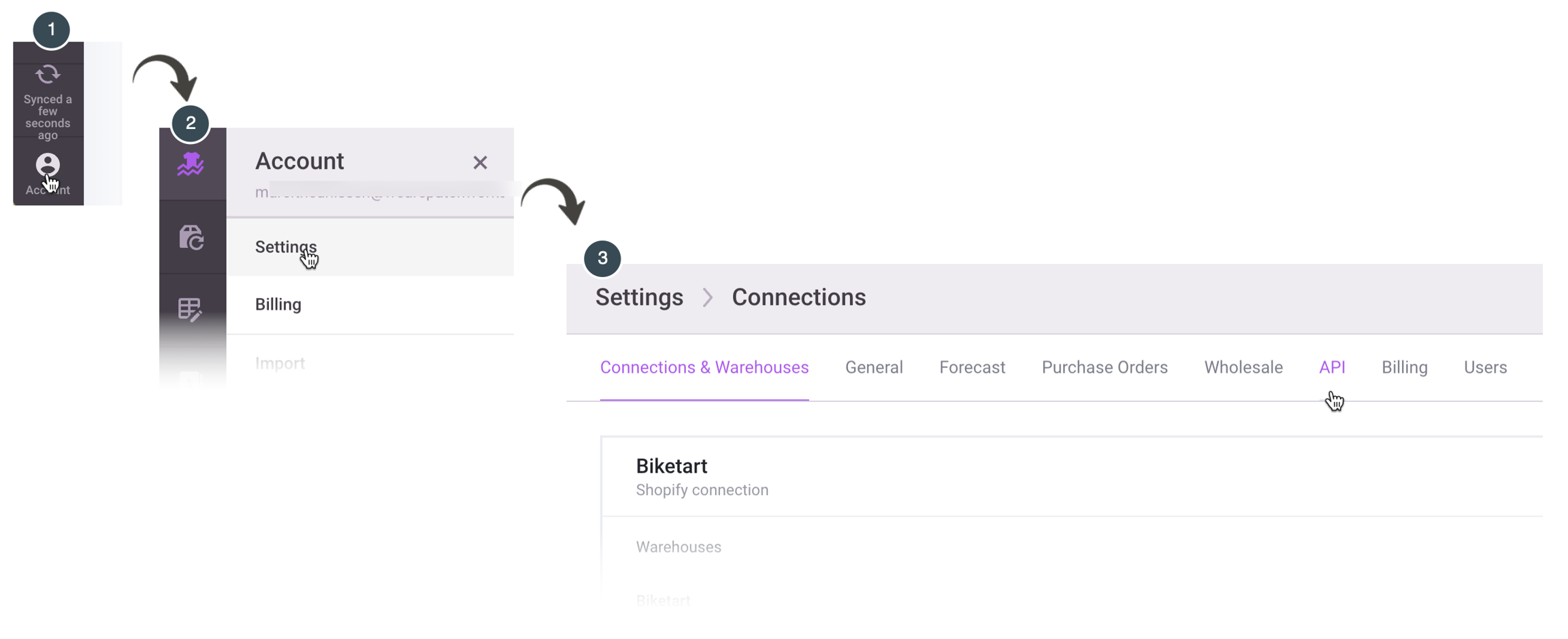 Step 2 Navigate to account | settings | API: