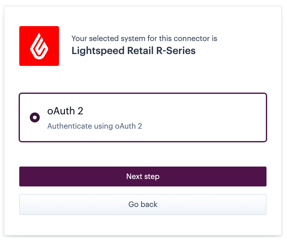 To add a Patchworks connector for Lightspeed Retail R-Series, you don't need to enter authentication credentials in the setup form. Instead, you are directed to the Lightspeed Retail R-Series login page so you can log in and authorise access for Patchworks.