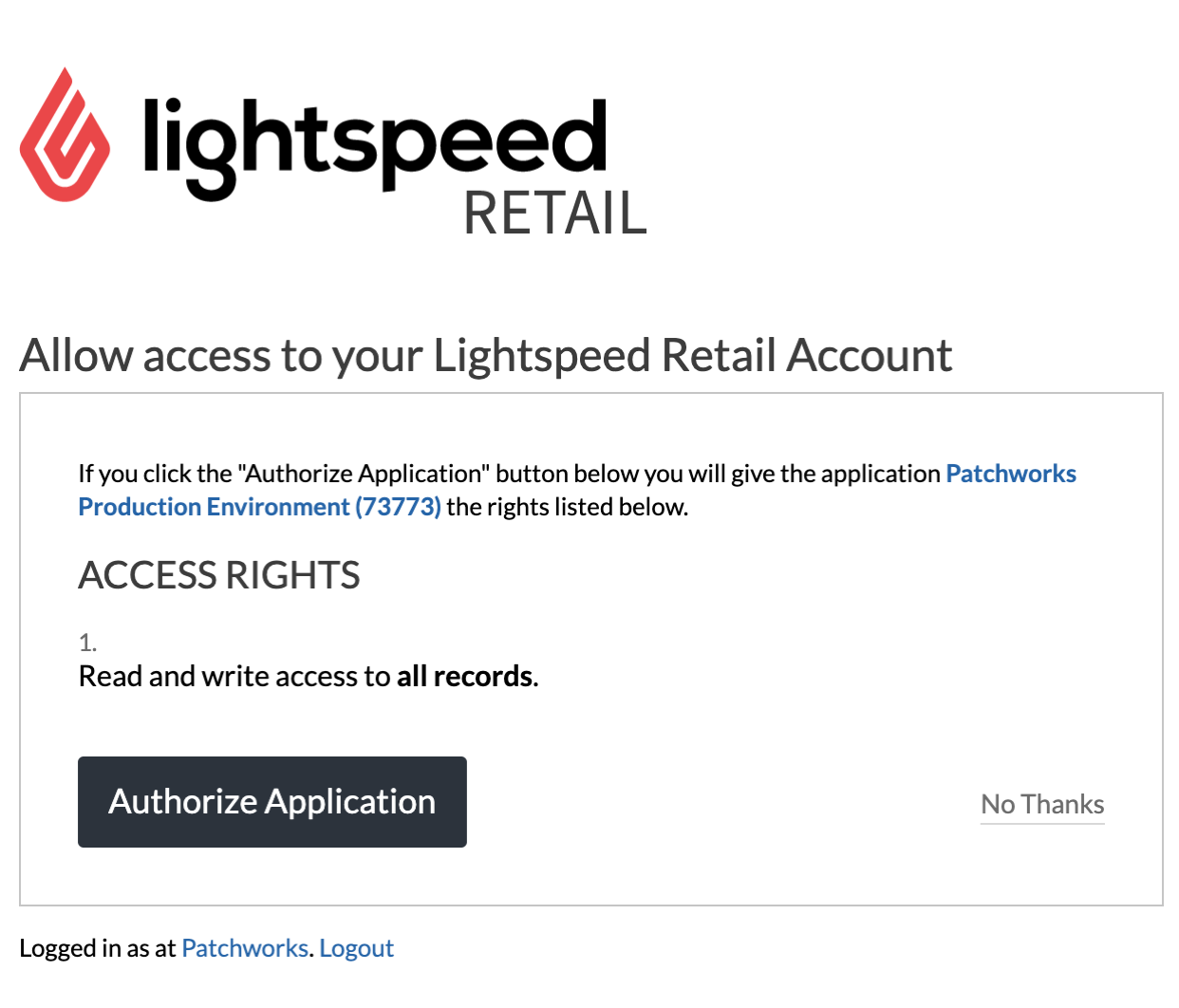 Authorising Patchworks to access your Lightspeed Retail R-Series account (services)