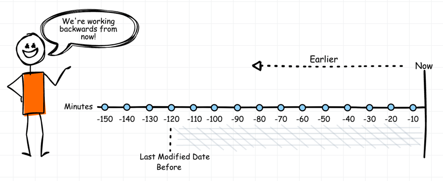 In this scenario, we're dealing with events that have occurred in the past, so Patchworks filters are defined to work back from 'now'.