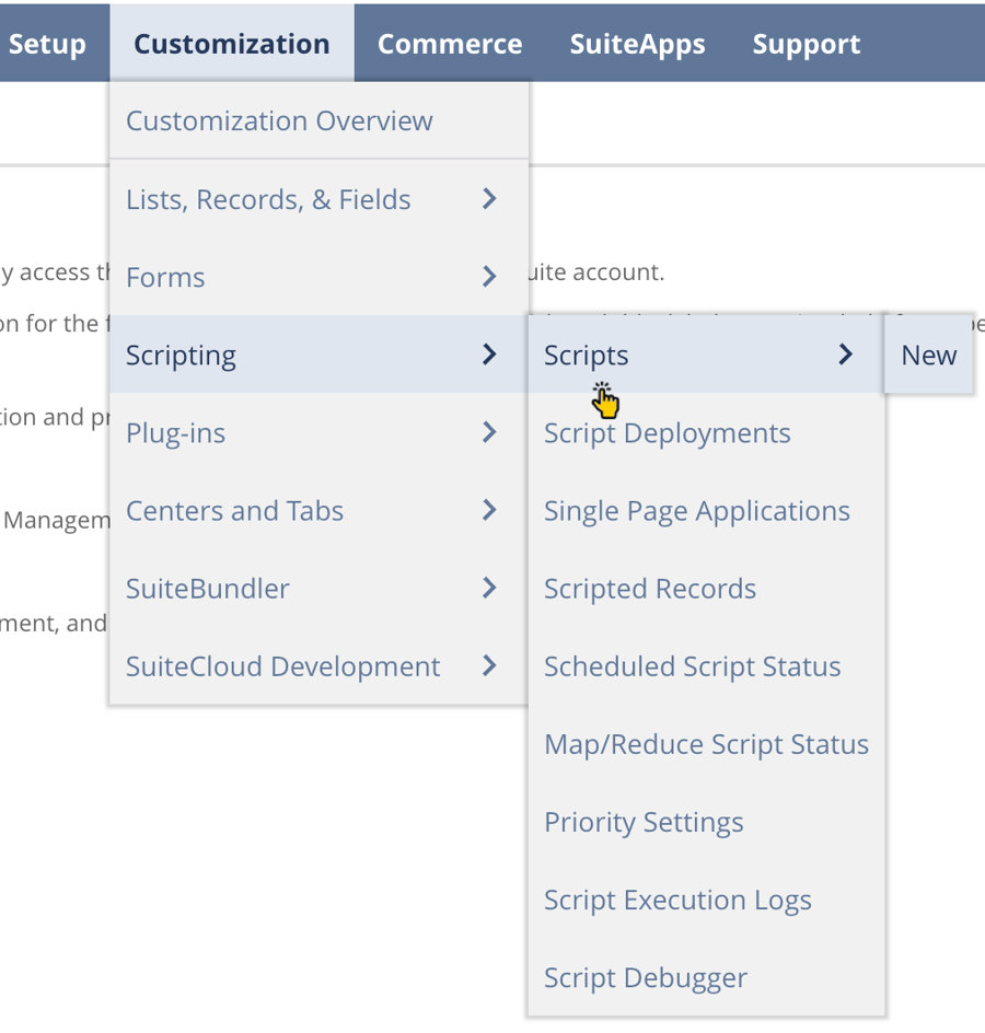 Step 1 Navigate to customization > scripts: