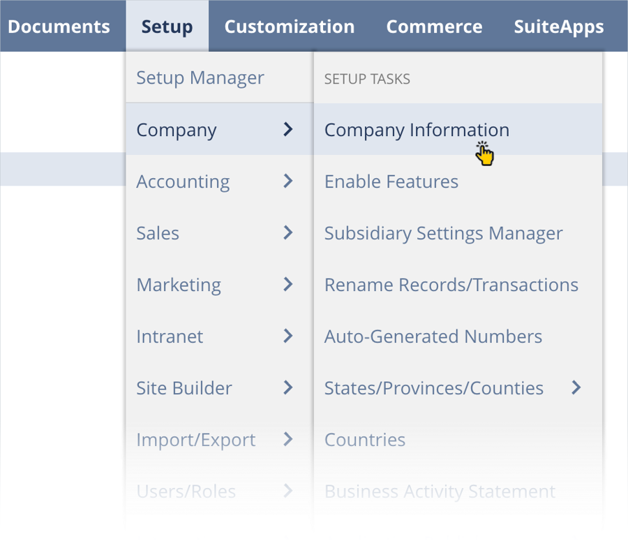 Step 1 Navigate to company > company information: