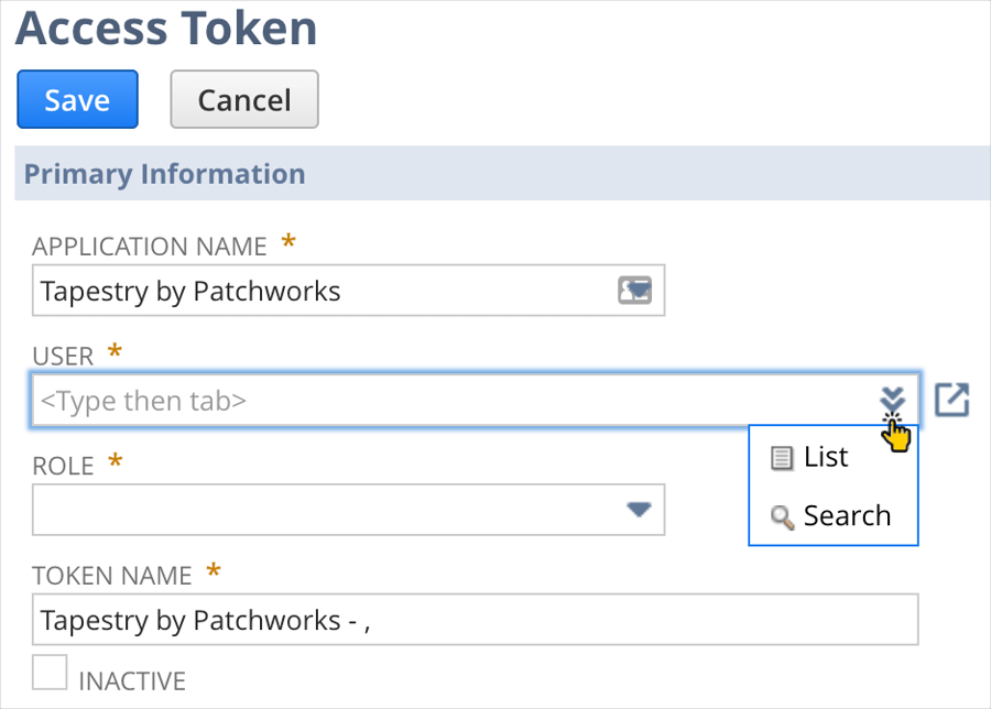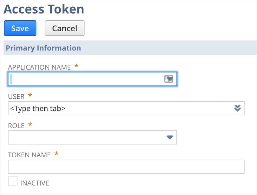Step 2 Navigate to setup > users/roles > access tokens > new: