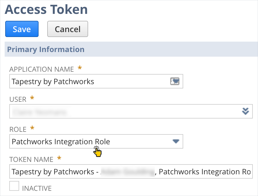 Step 4 Click in the role field and assign the patchworks integration role: