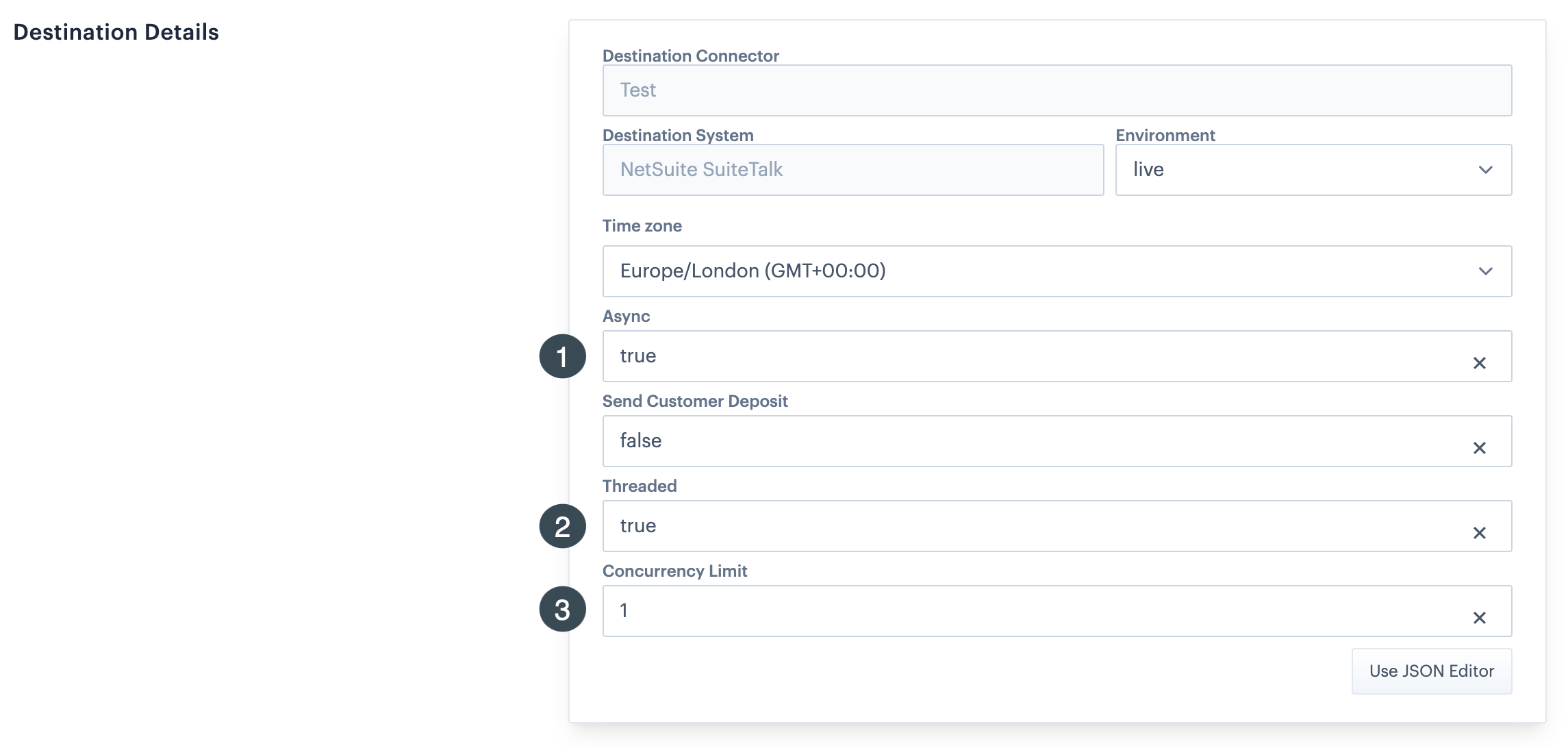| Async             | [Works best with the **threaded** option (but can be used independently)](#async-and-threaded-settings-summary) to utilise NetSuite's concurrent processing functionality for improved throughput speed.                                                                                                                                                                                                                                                                                                                                                                                                                                                                                             |