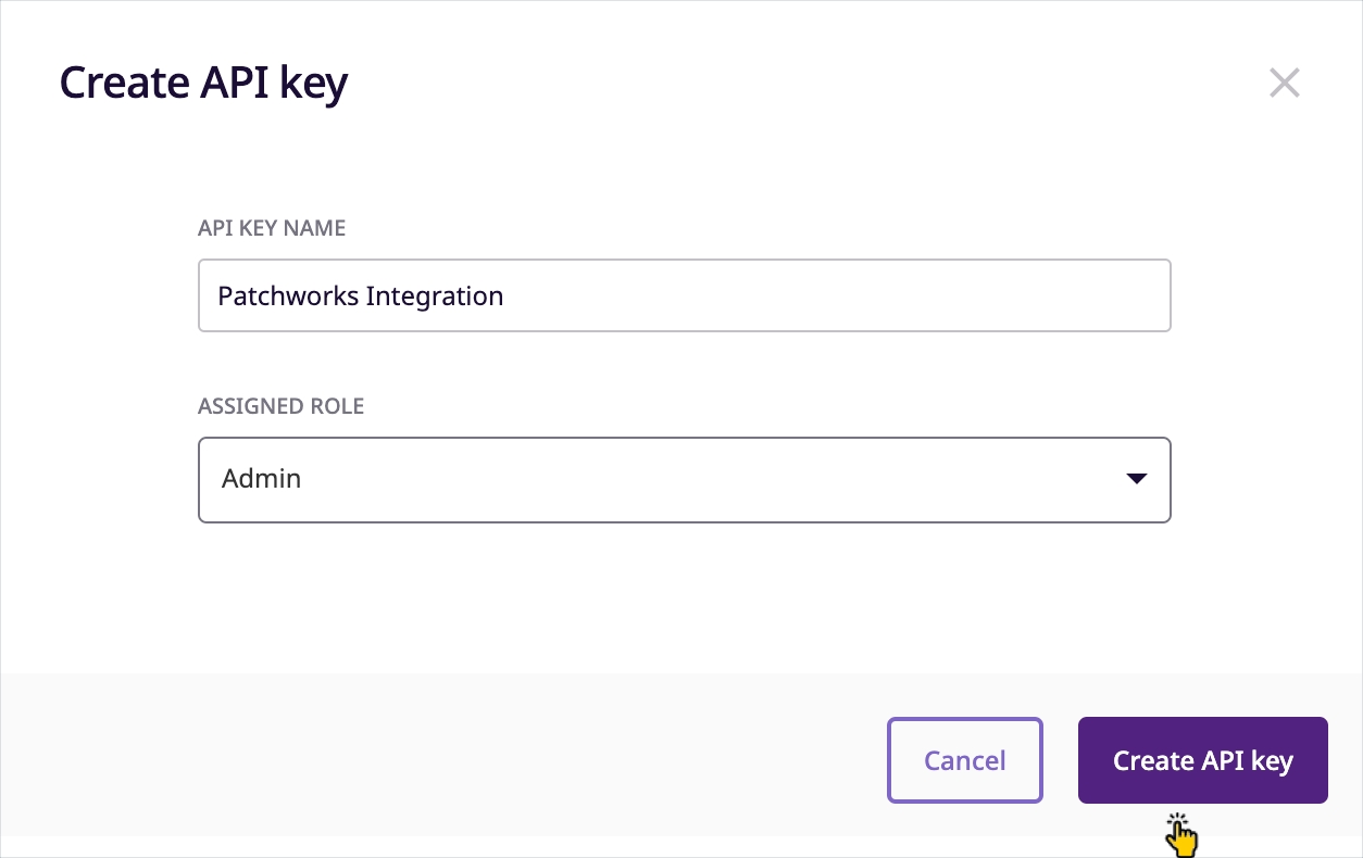 Patchworks IntegrationStep 7 Click in the assigned role field and select admin from the dropdown list.