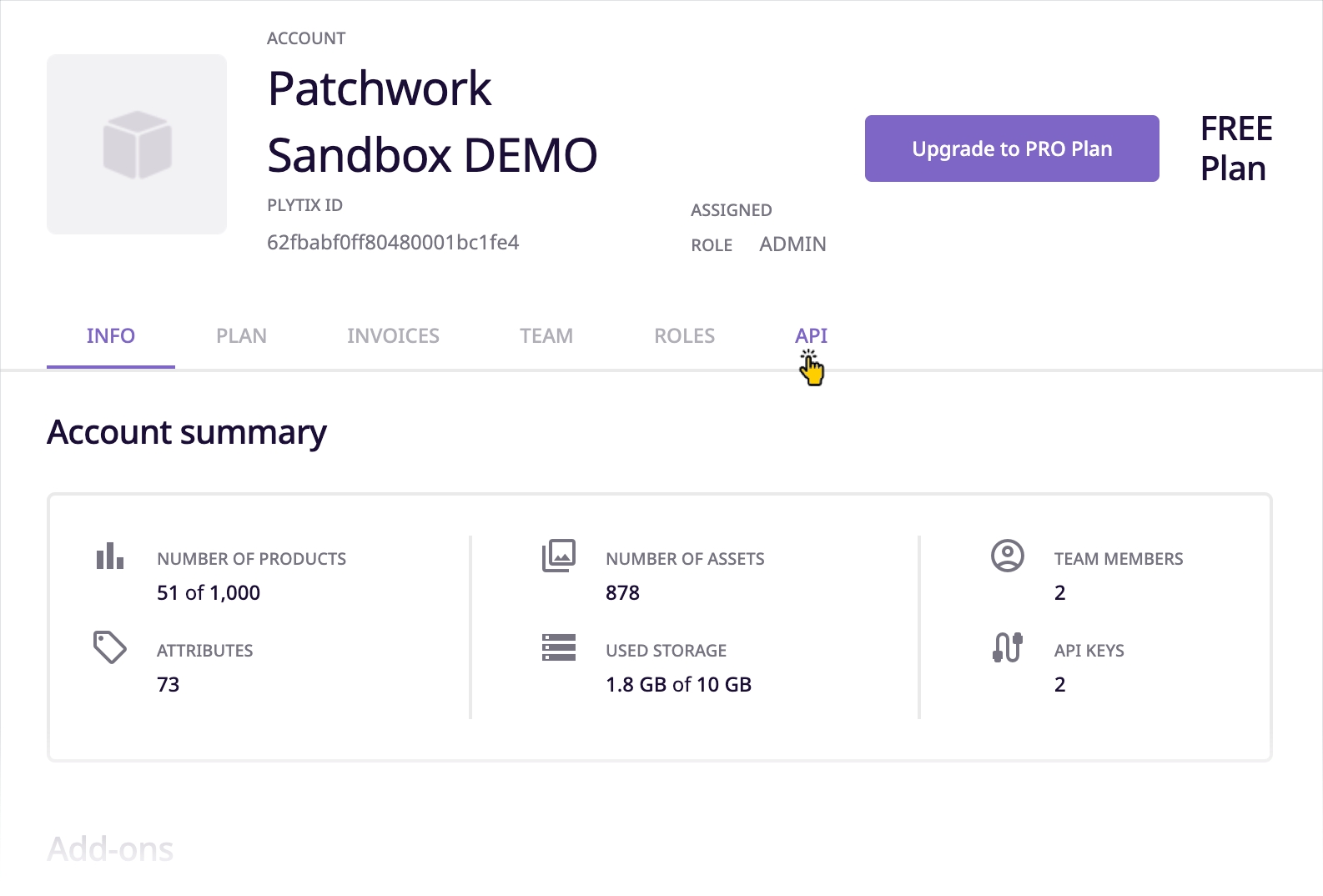The credentials listed above are needed so that Patchworks can access the required data in Plytix. To obtain API credentials, follow the steps below.
