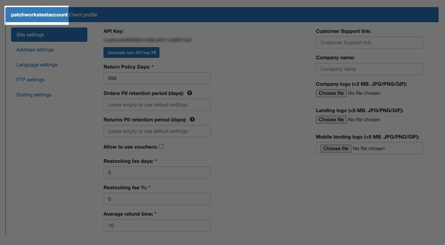 This is the name that you use to log into the Intelligentreturns control panel, as provided by ReBound. It will always be a name rather than an email address - for example: patchworkstestaccount.