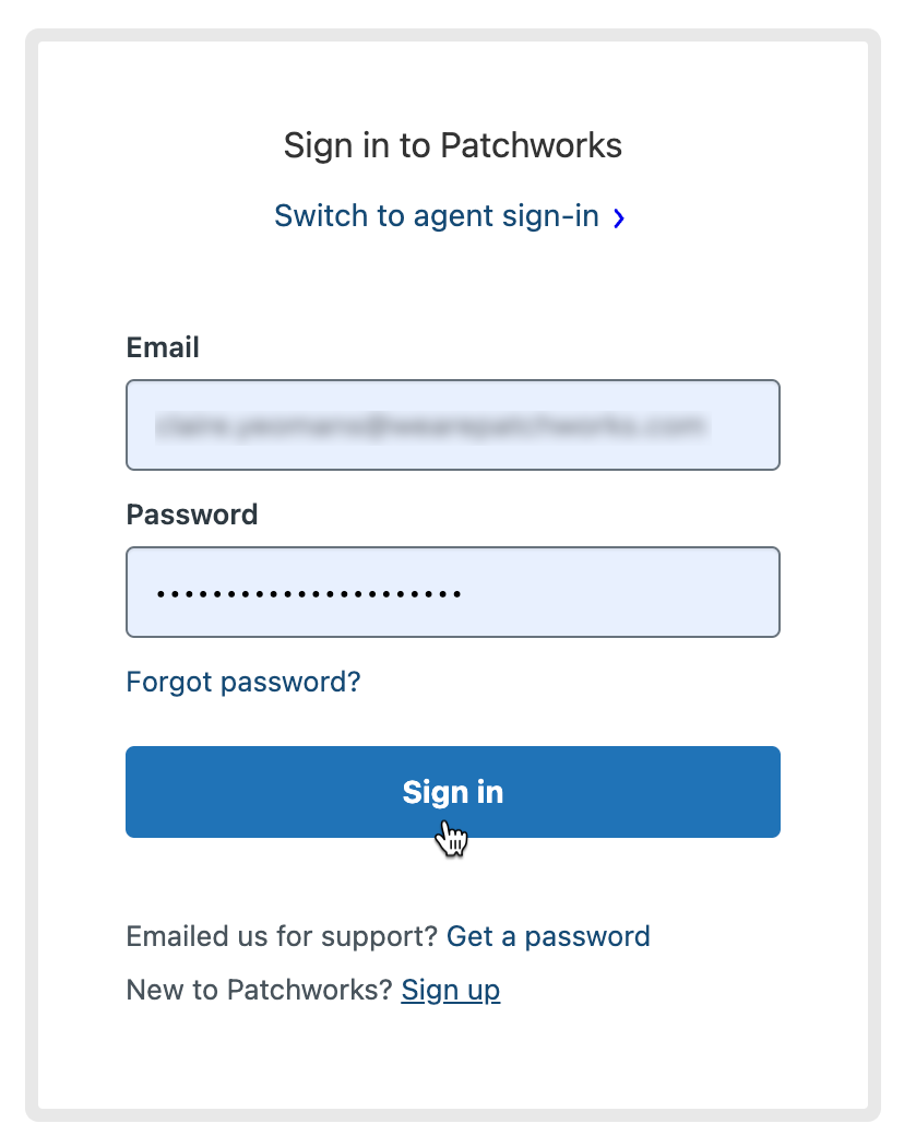 If you don't have credentials for Zendesk, you can use the sign up link to register. In this case, we advise using the same email address that you use to log into the Patchworks dashboard.
