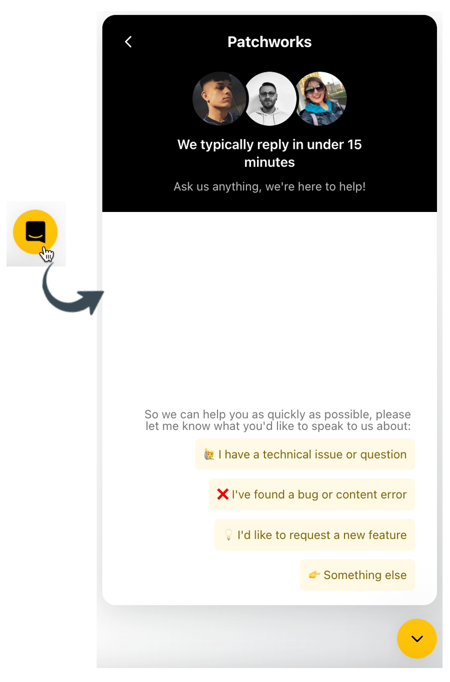 The easiest way to get in touch is to send a message via our chatbot in the Patchworks dashboard: