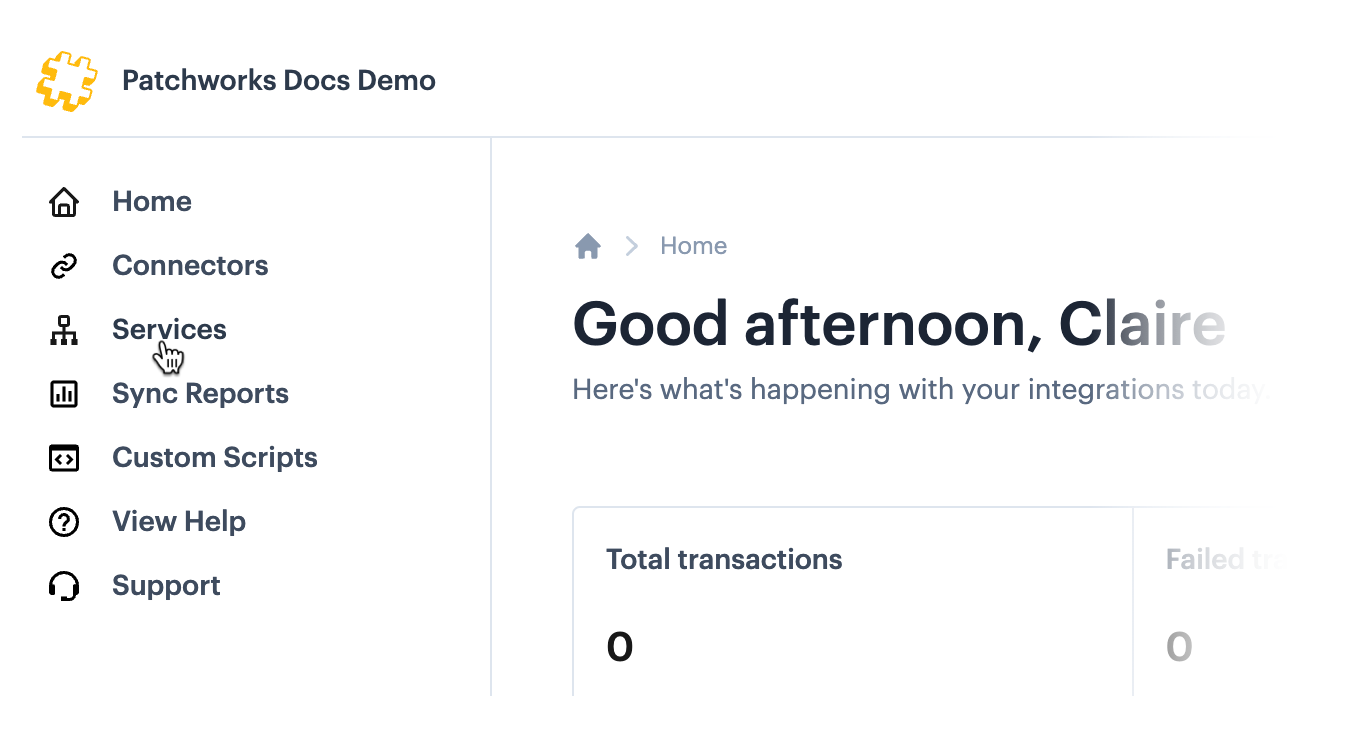 This page shows how to access your Patchworks services.&#x20;