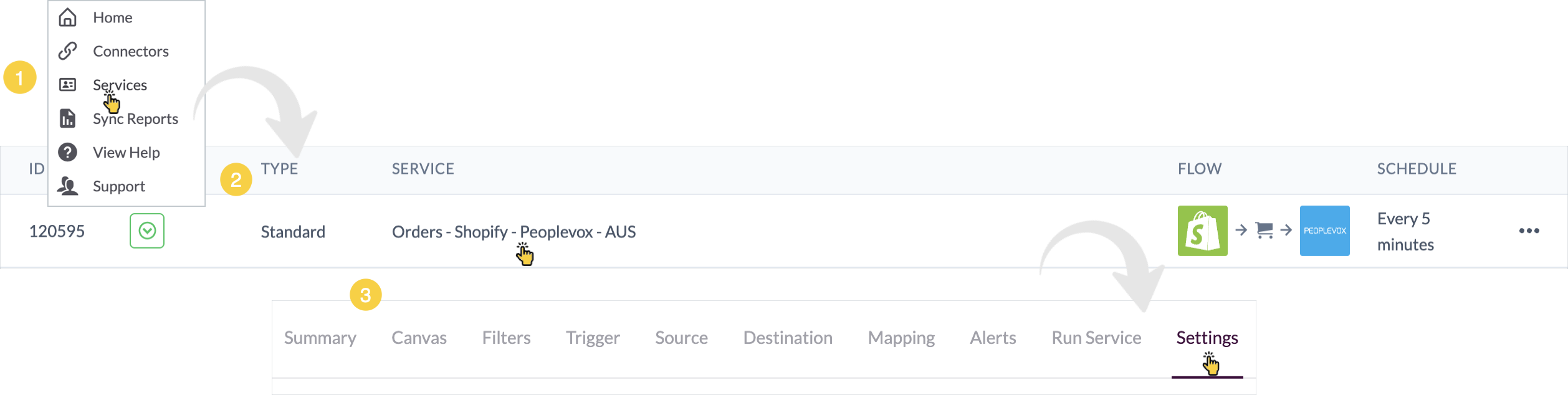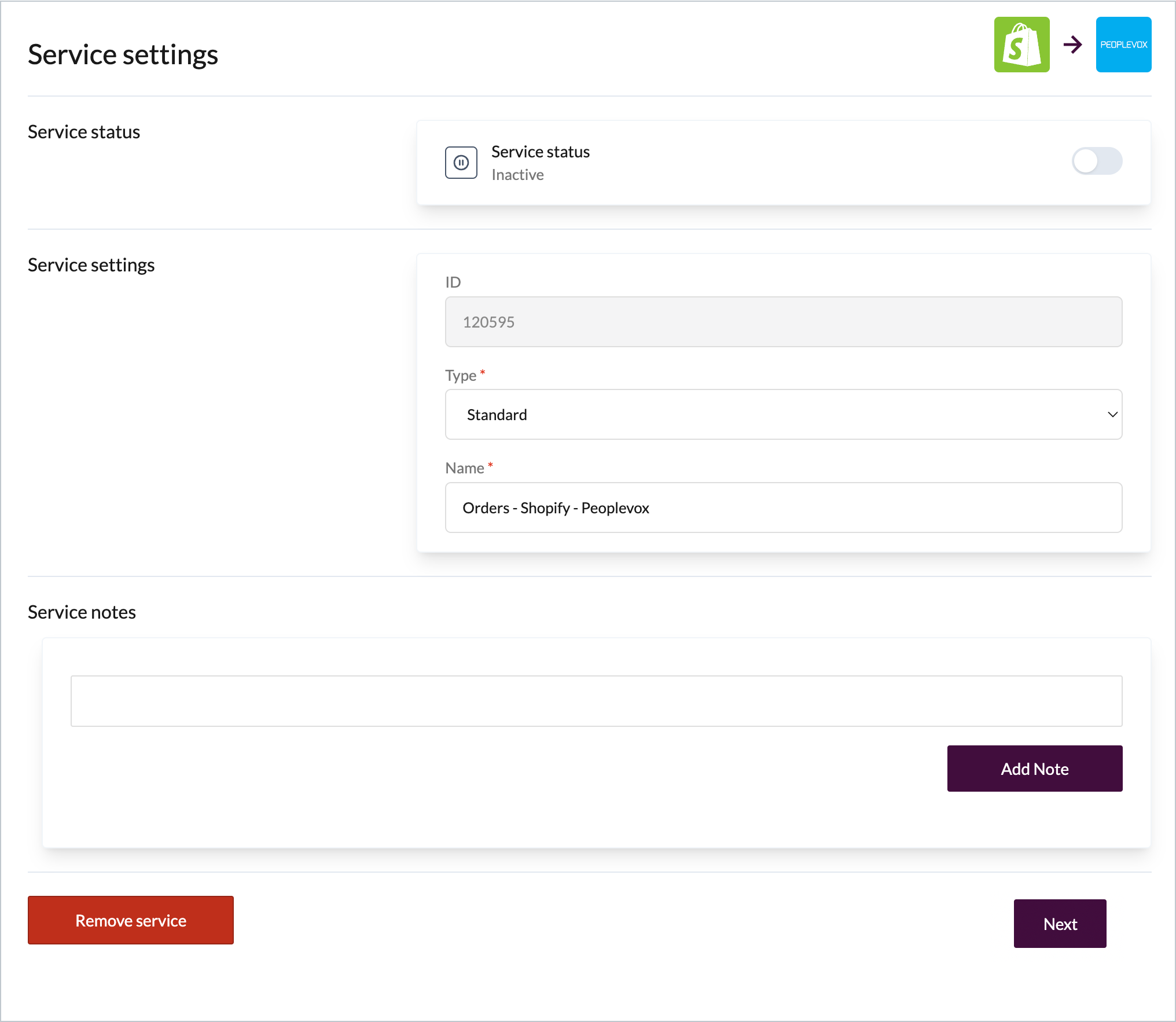 The steps detailed on this page assume that you are following the ['new service' flow](https://doc.wearepatchworks.com/product-documentation/patchworks-services/working-with-services/adding-a-patchworks-service) and have just saved [field mappings](https://doc.wearepatchworks.com/product-documentation/patchworks-services/working-with-services/adding-a-patchworks-service/define-field-mappings), so the **service settings** page is displayed: