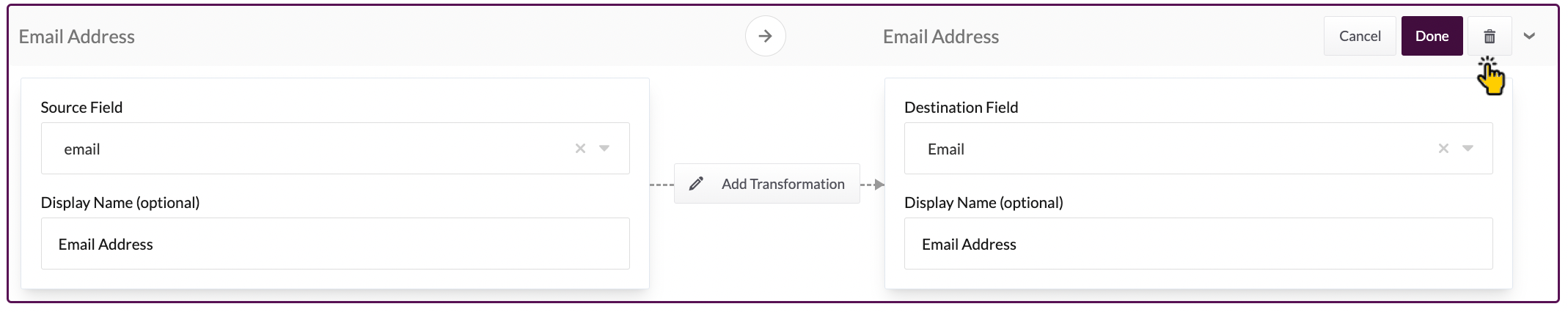To remove a mapping entry, click the **trash** icon in detail view: