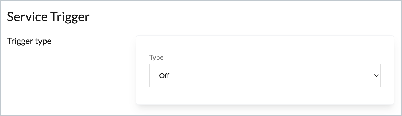 The steps detailed on this page assume that you are following the 'new service' flow and have just saved service settings, so the service trigger page is displayed: