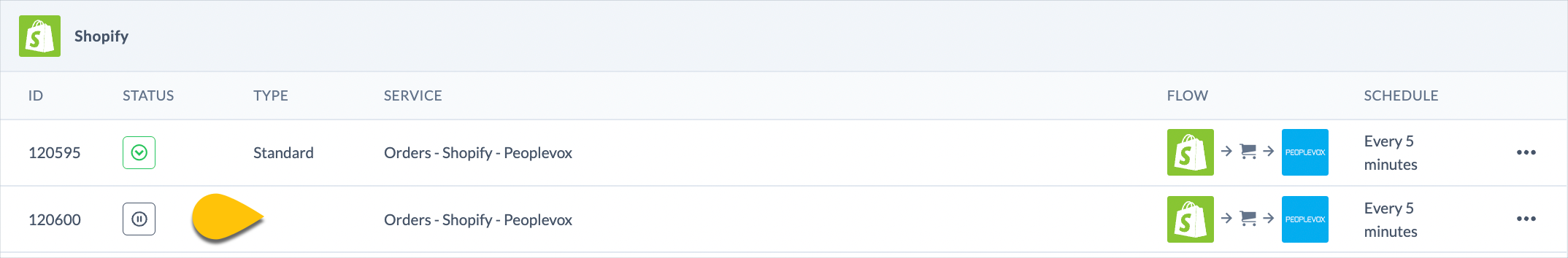 Click the ellipsis icon associated with the service to be cloned: