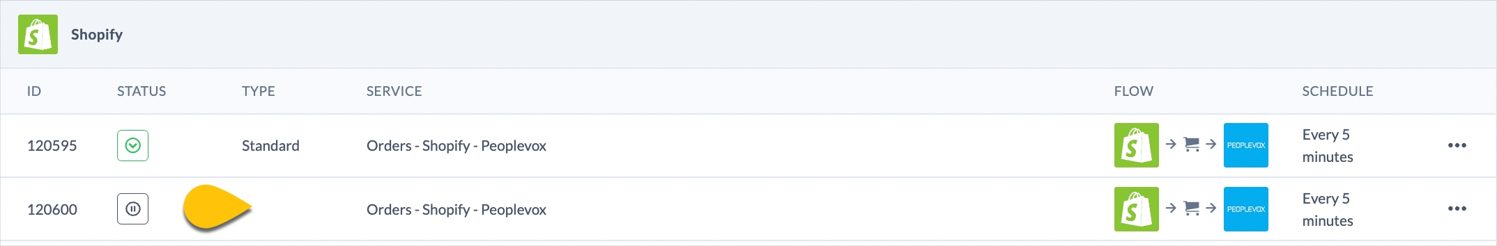 Step 4 A copy of the selected service is added to the services list - you can identify it easily because the type column is blank - for example:
