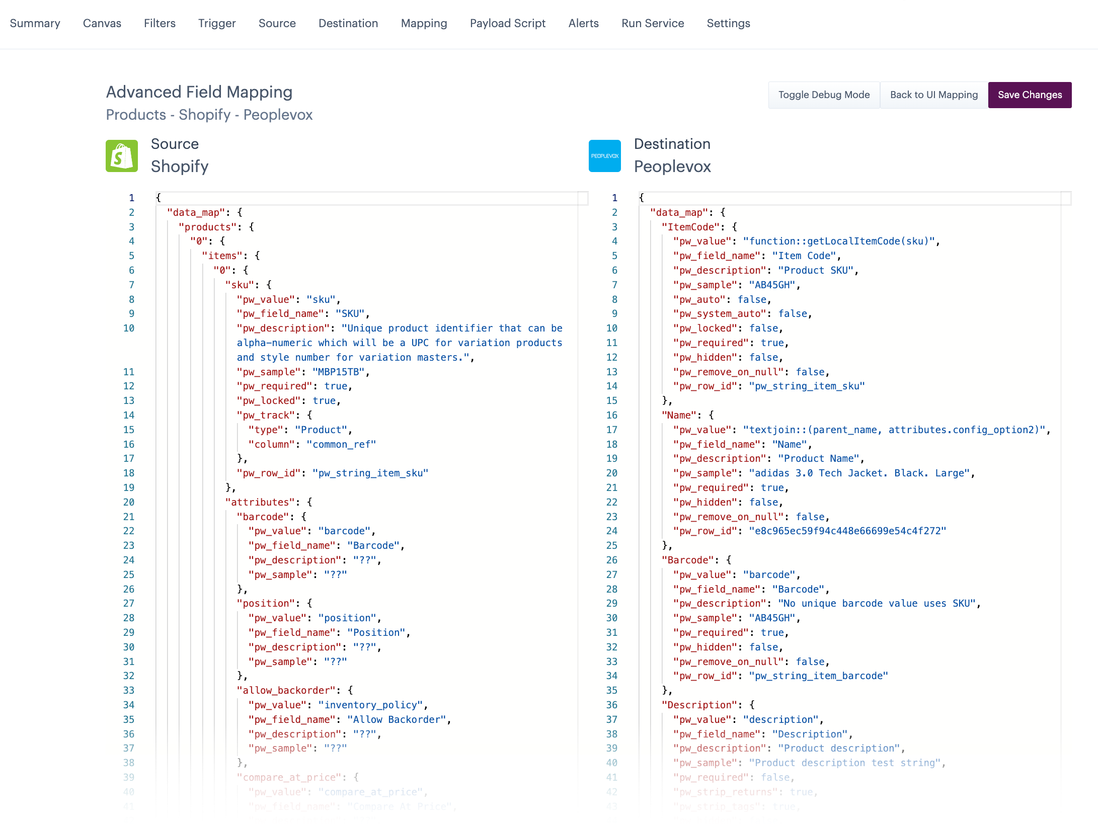 Typically, field mappings are defined from a source system to the required destination. The same applies to metadata fields except we don't specify source mappings. Instead, we configure the required Patchworks service(s) to inject metadata from the source data, into your mapped destination fields. In other words, you only need to define destination mappings for metadata fields - the source side is taken care of automatically.