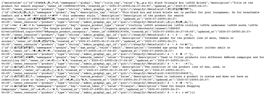 In Shopify you can access a sample entity (e.g. a product or an order) in the Shopify admin console and then append the following to the URL: