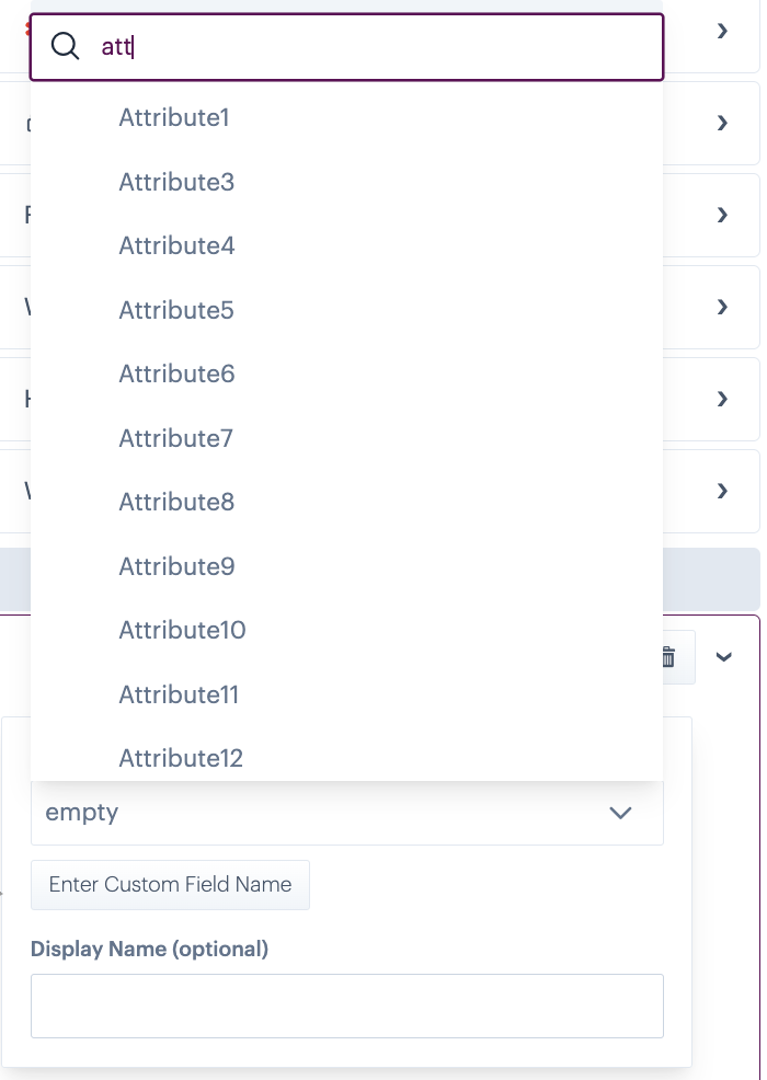 Step 3 On the right-hand side, click the destination field and search for the first field that you wish to define as a destination for a metadata field. Typically, 'attribute' fields are used for this purpose: