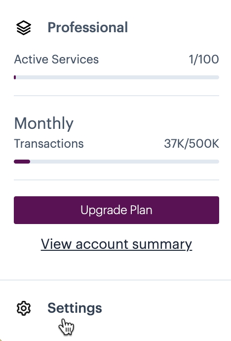 Step 2 Move to the bottom of the left-hand navigation bar and select Settings: