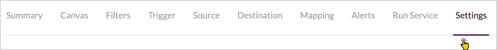 Click the **settings** tab: