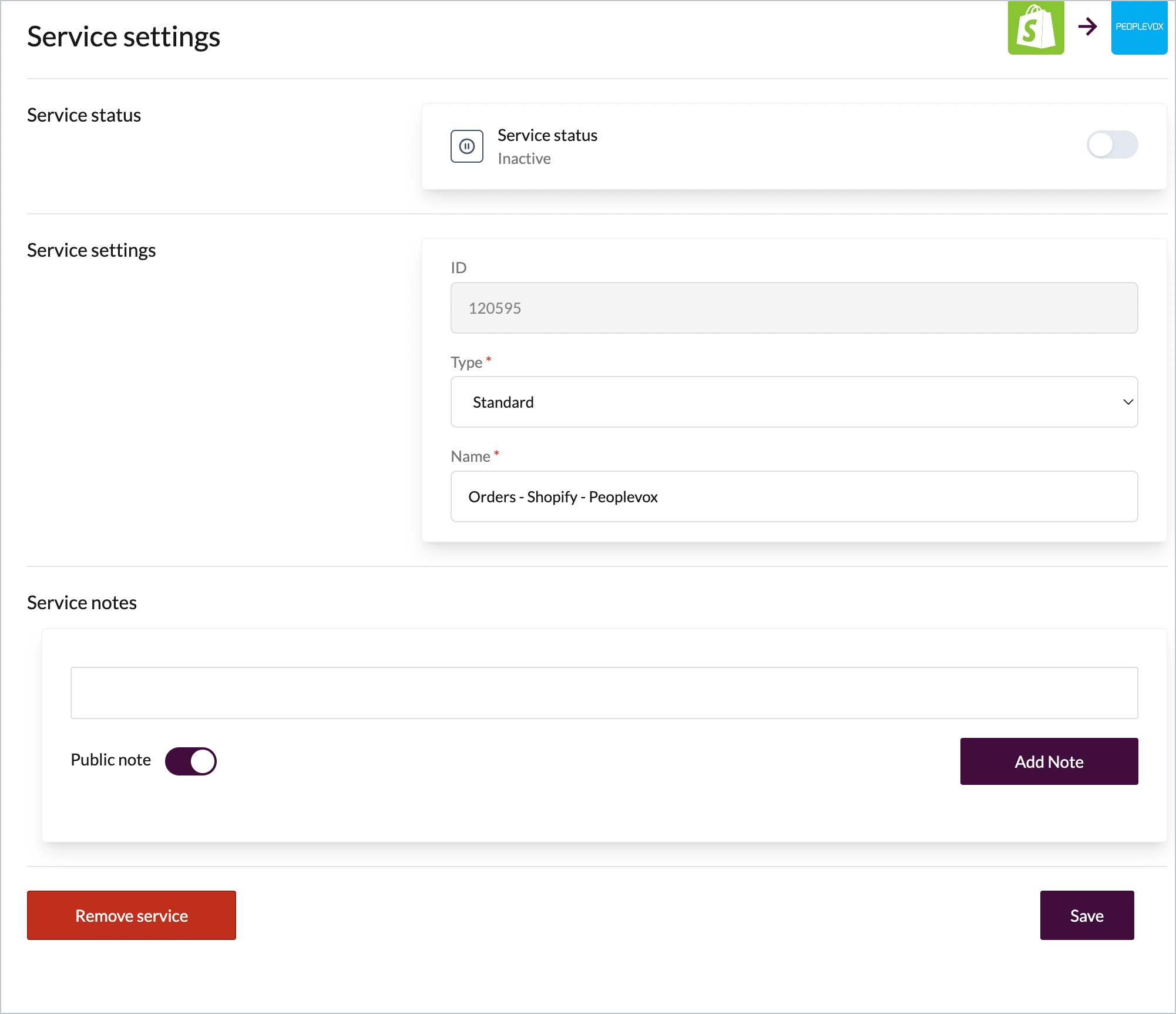 If you're certain that you wish to remove the service, click the **remove service** button at the bottom of the page: