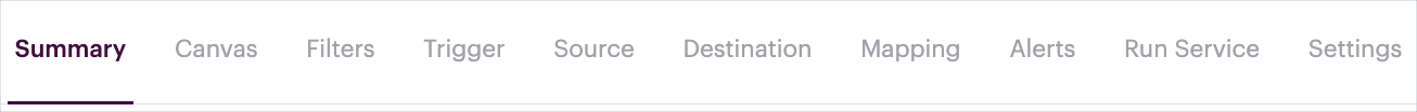 When you add or update a service, information and options are accessed via a series of tabs: