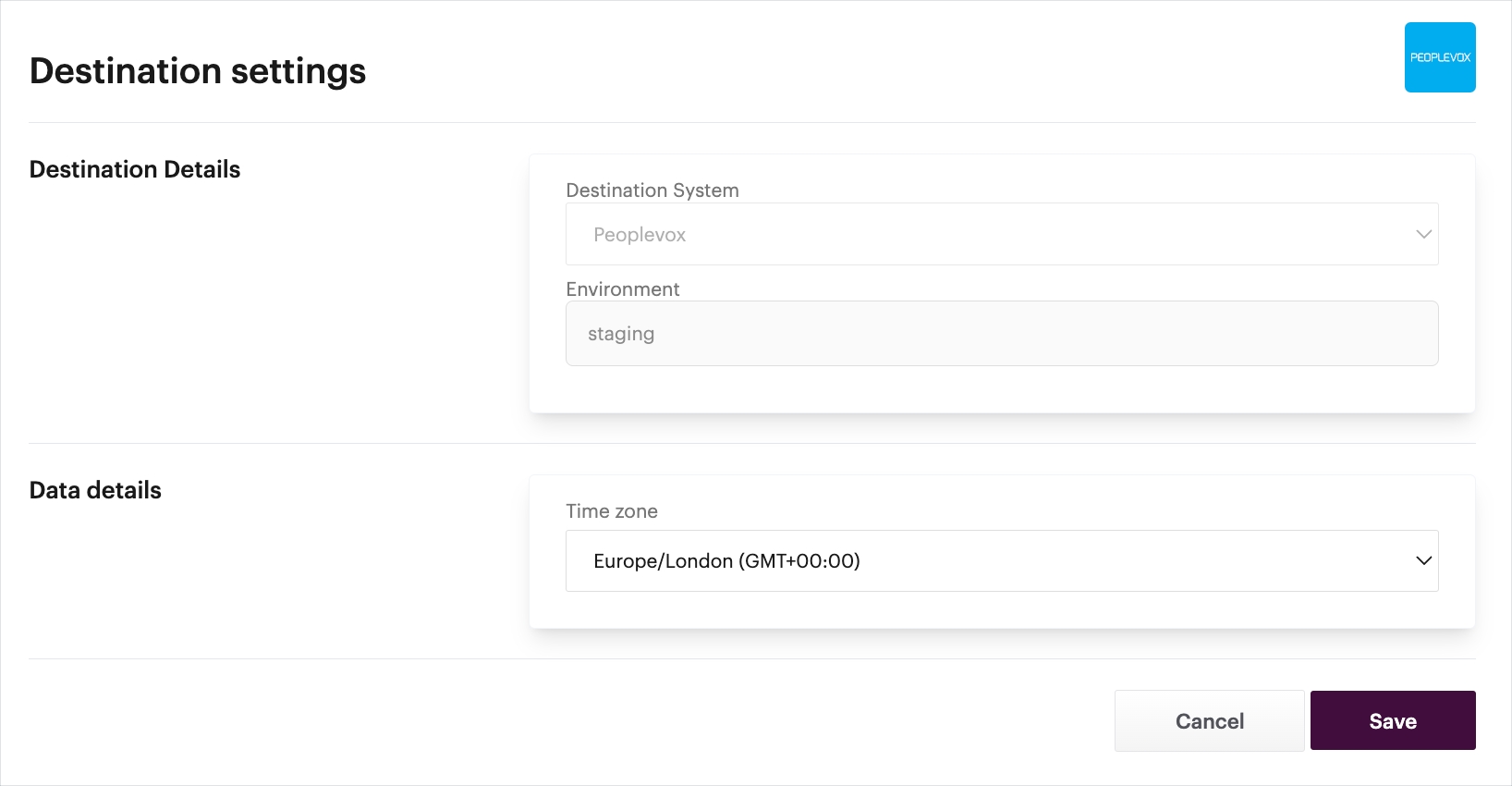 The system that is defined as the destination for this service (e.g. Peoplevox). When this service runs, data is pushed to this system.