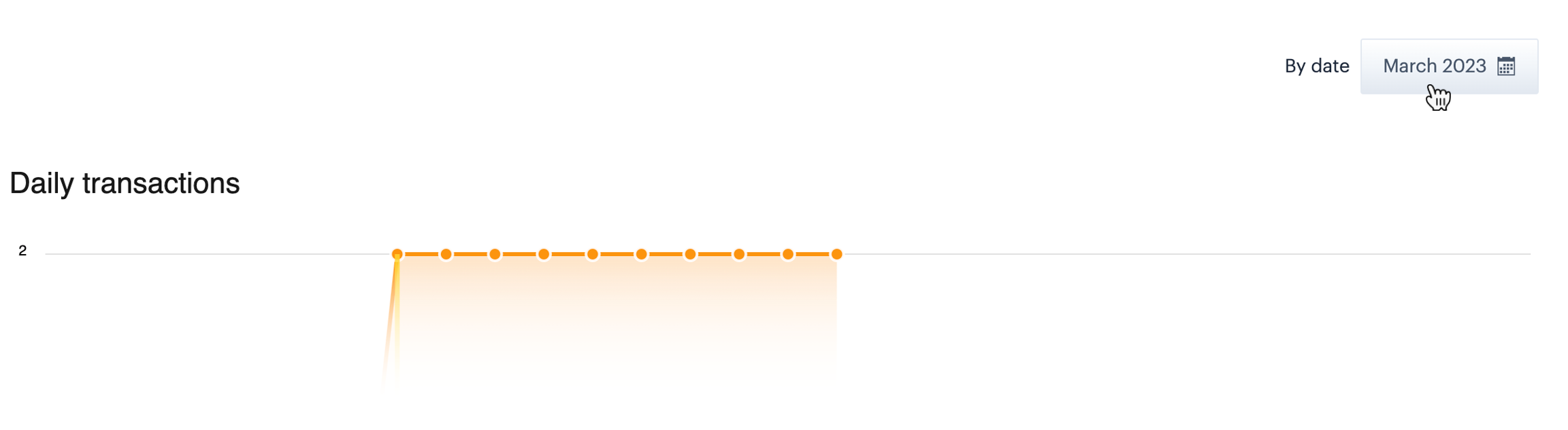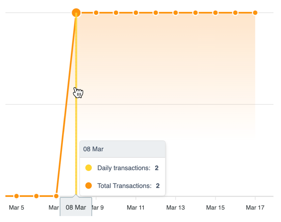 The daily transactions pane displays a chart showing transactions for the defined time period. Hover your cursor over any point on the chart for details - for example: