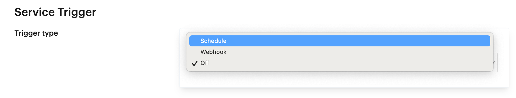 Trigger webhook options are used to trigger the associated service to run when a defined webhook receives events.