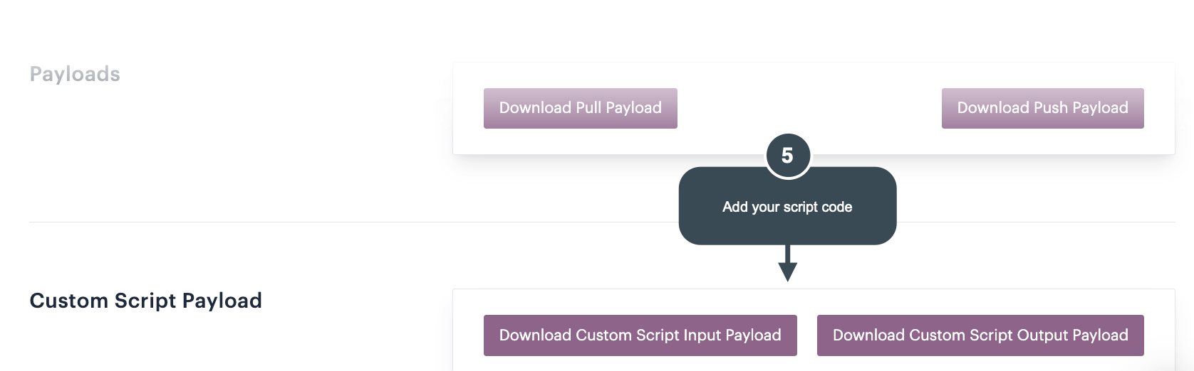 When the service run is complete and you opted to download custom script payloads, you can download these files using buttons in the custom script payload panel: