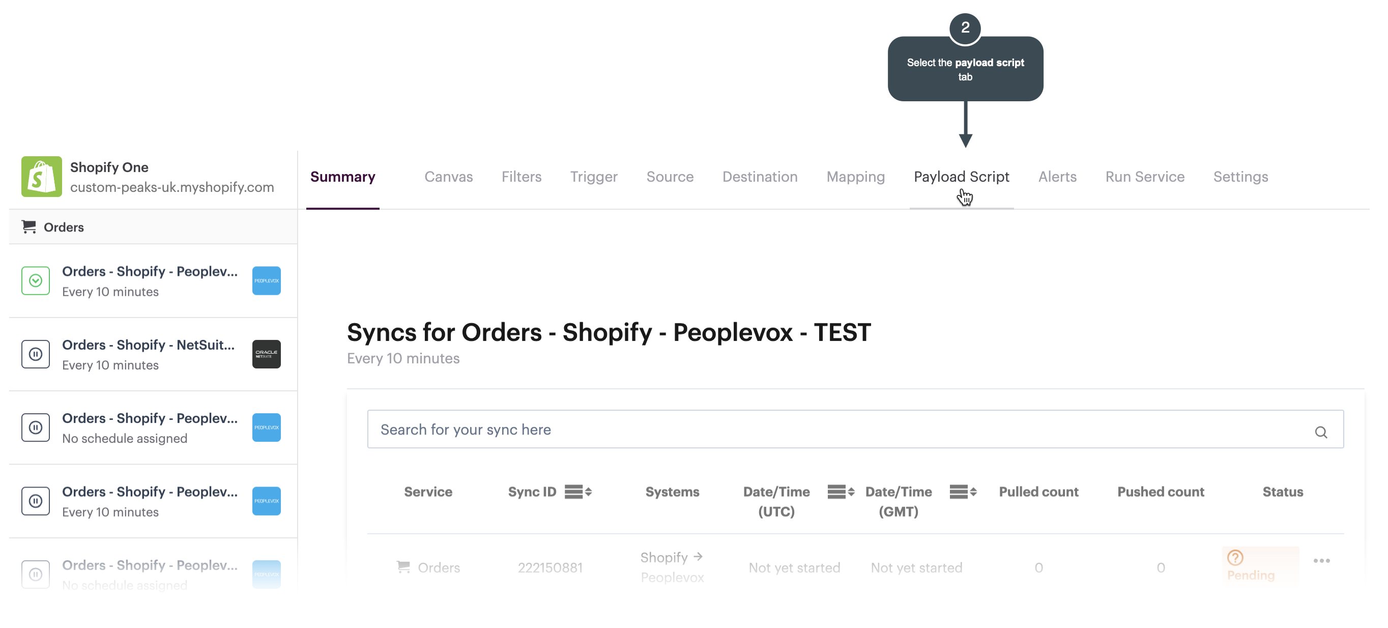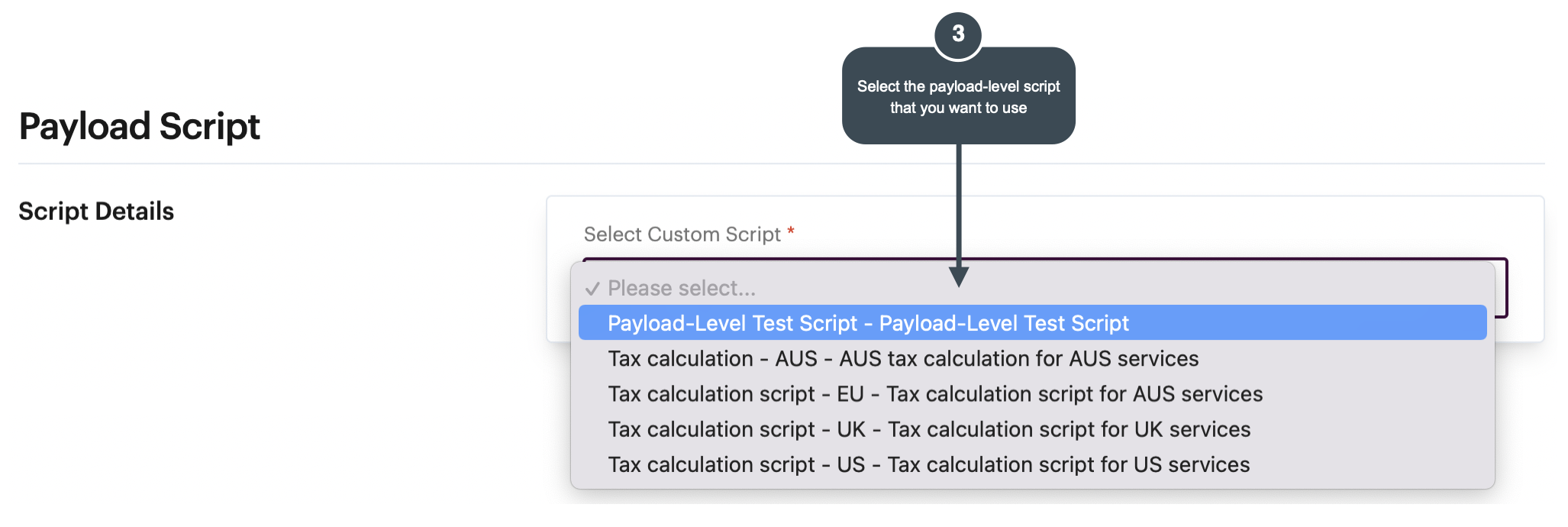 If at least one **payload-level** custom script has been added, a **payload script** tab is available - select it:
