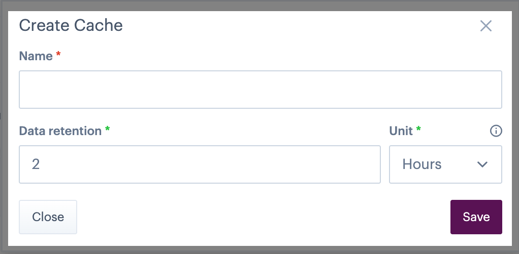 Enter a name for the cache (this name is displayed wherever the cache is used in the dashboard).