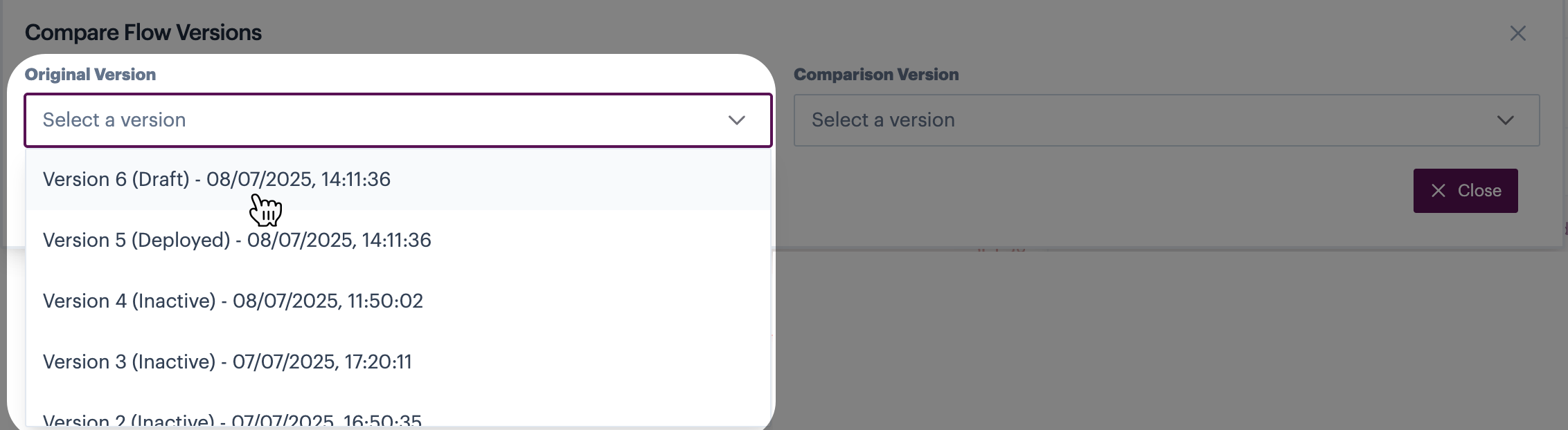 <figure><img src="https://2440044887-files.gitbook.io/~/files/v0/b/gitbook-x-prod.appspot.com/o/spaces%2FLYNcUBVQwSkOMG6KjZfz%2Fuploads%2FTDwI7ln6nTzXfxBvFvPv%2Fcompare%20flow%20versions%204.png?alt=media&#x26;token=c90ee86f-c11a-4924-8ec3-654d77b0f0a1" alt=""><figcaption></figcaption></figure>