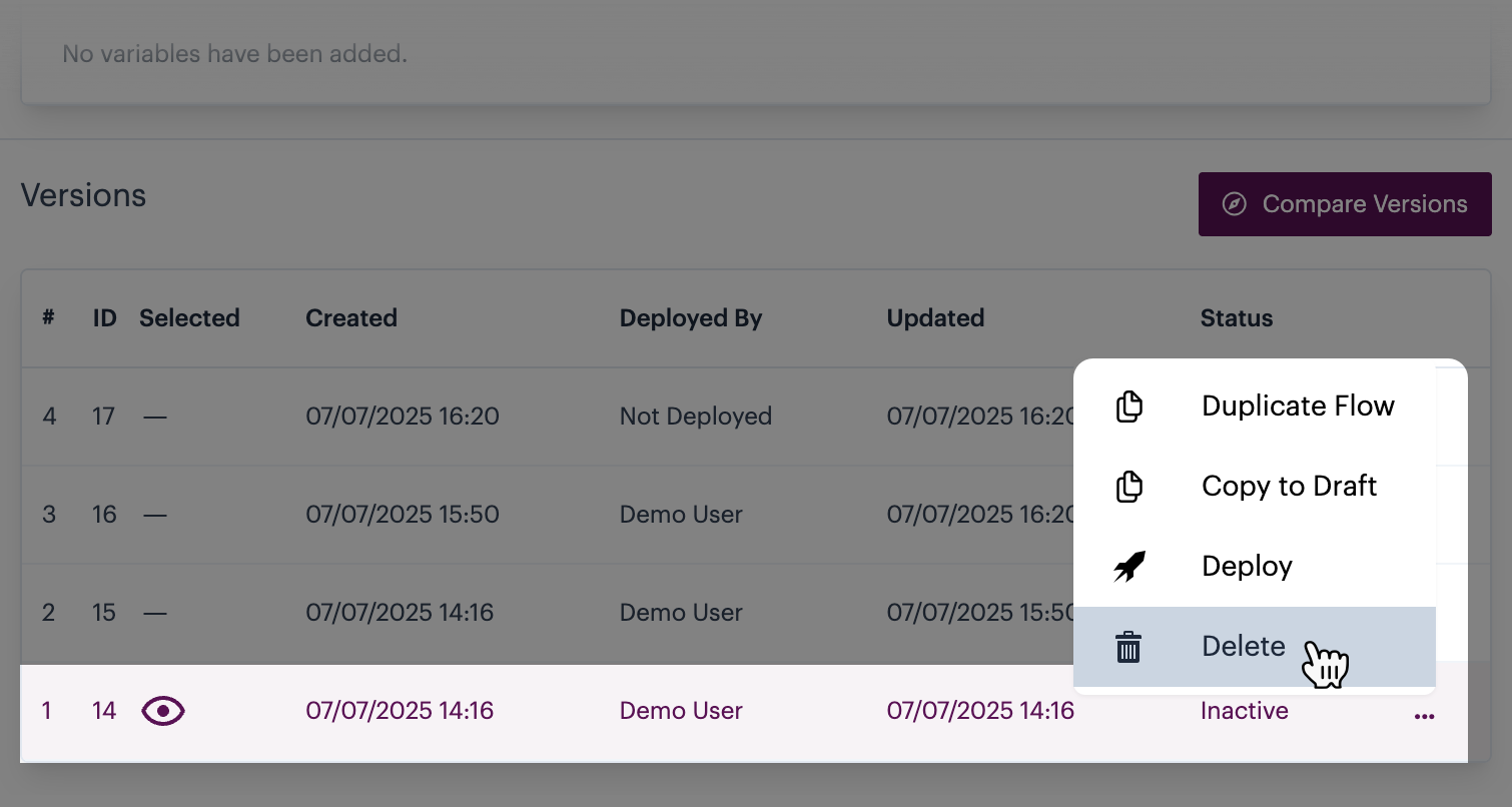 # Deleting an inactive process flow version