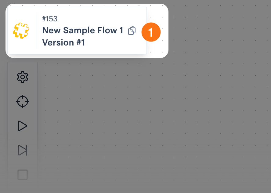The process flow title bar shows the process flow name, as specified when it was created. The number above the title is the process `flow id` , and the number below is the `version` number. To change this title, use the [settings option from the actions bar](#settings).