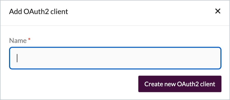 Step 4 Click the create new OAuth2 client button to confirm and display generated credentials: