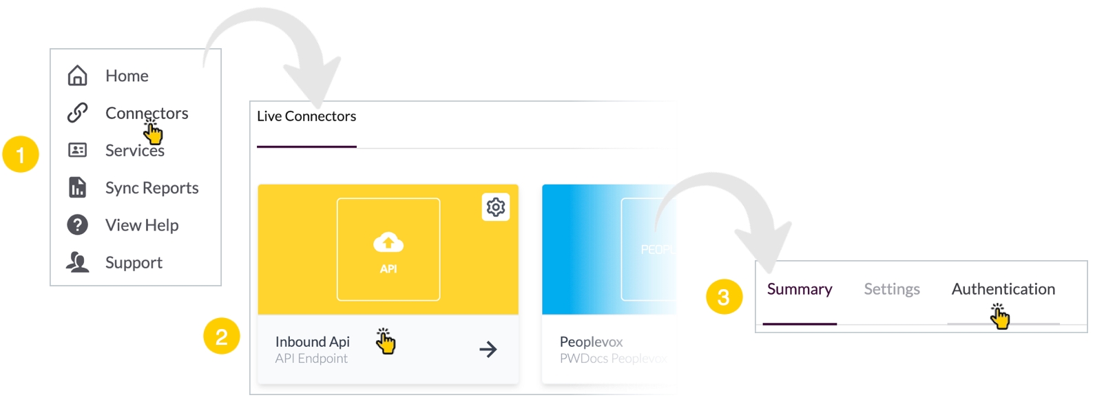 Step 1 Select the authentication tab for the required Inbound API Connector: