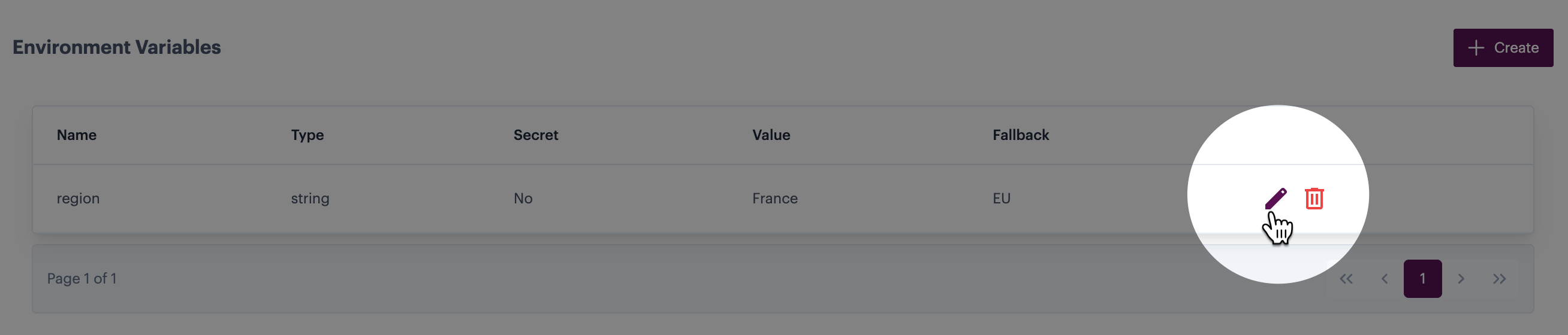 To remove an existing environment variable, click the trash icon associated with the environment variable you want to remove - for example: