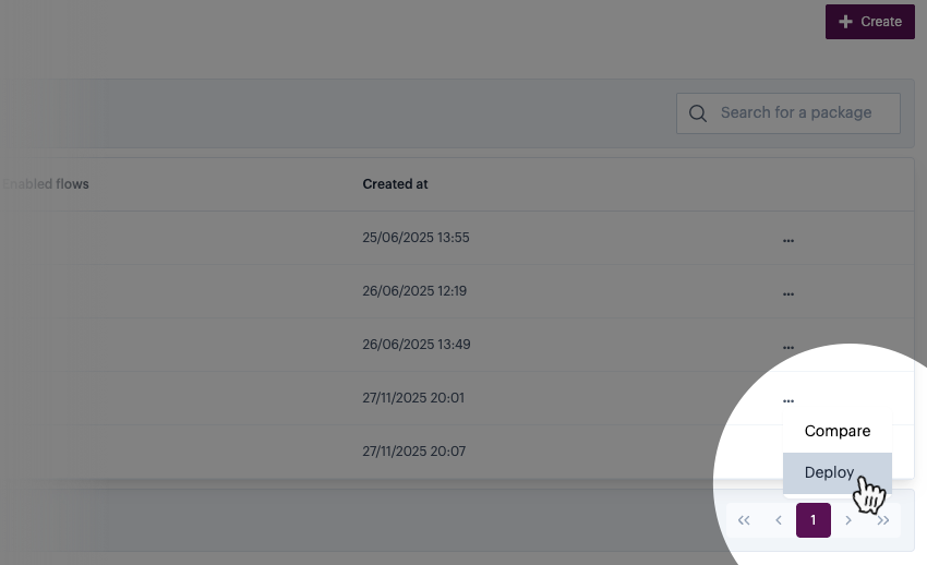 Click the ellipsis icon associated with the required package, then select the `deploy` option: